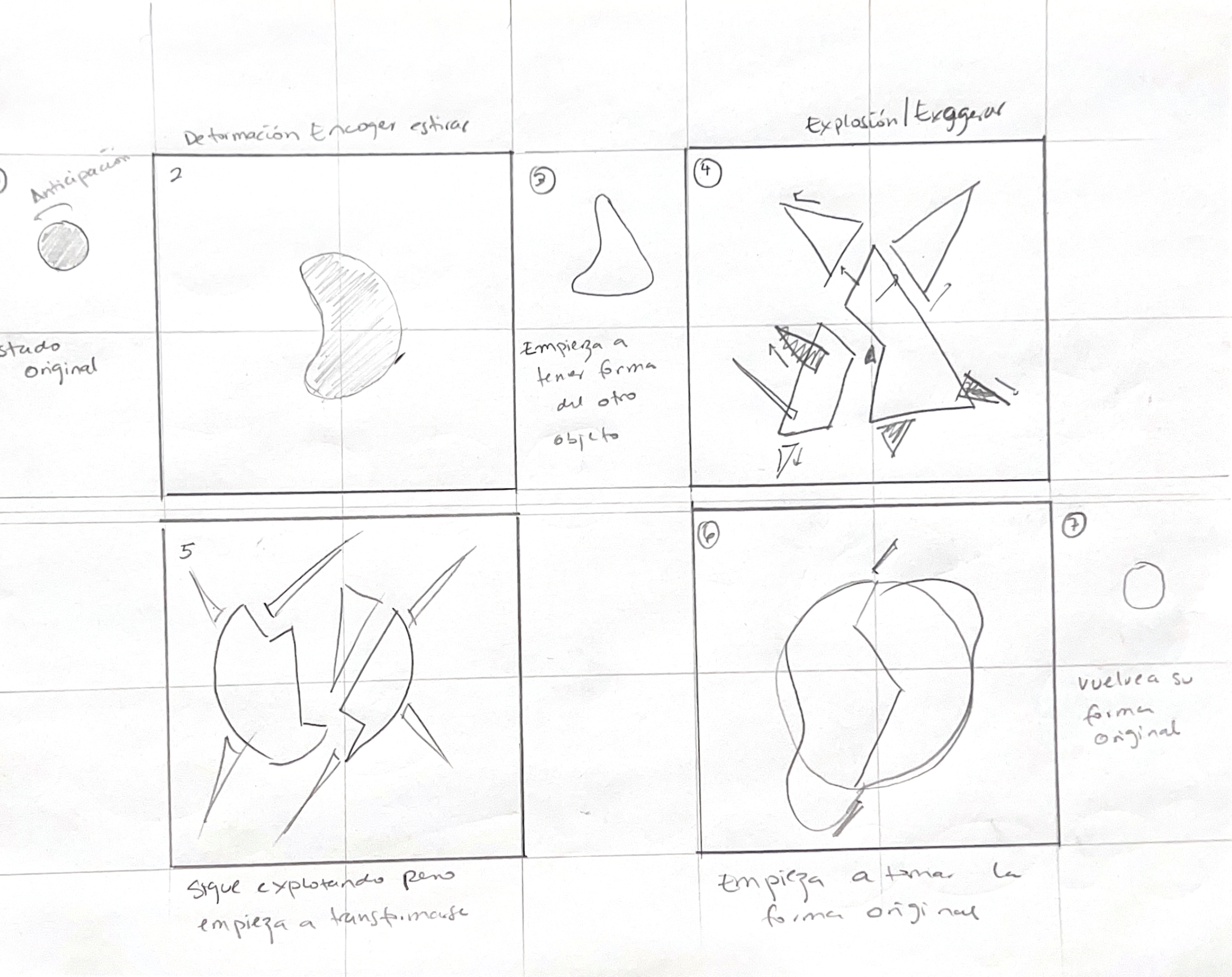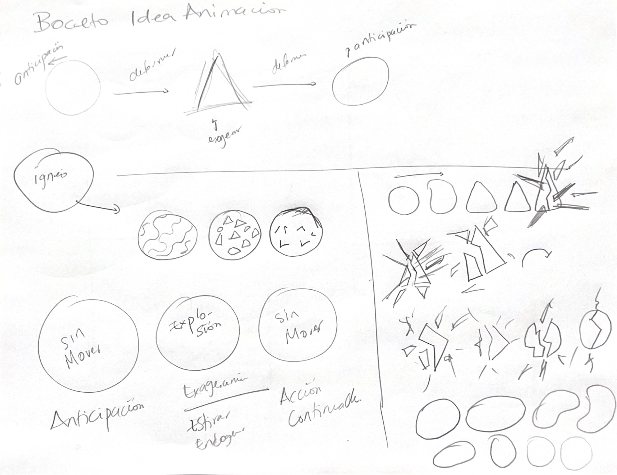 Bocetería de la idea: Estudio del concepto seleccionado y aplicación de la idea de animación bassado en hacia adelante y pose a pose.
